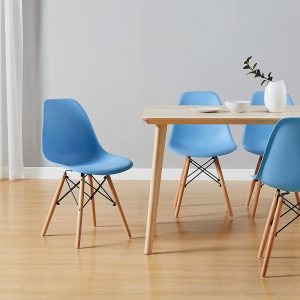 Modern Mid-Century Side Chair with Natural Wood Legs for Kitchen, Living Dining Room, White