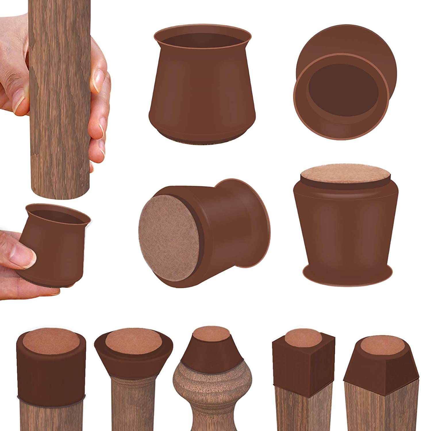 Dark Walnut Silicone Chair Leg Floor Protectors with Felt, Free Moving Table Leg Covers, Prevent Floor Scratches and Reduce Noise