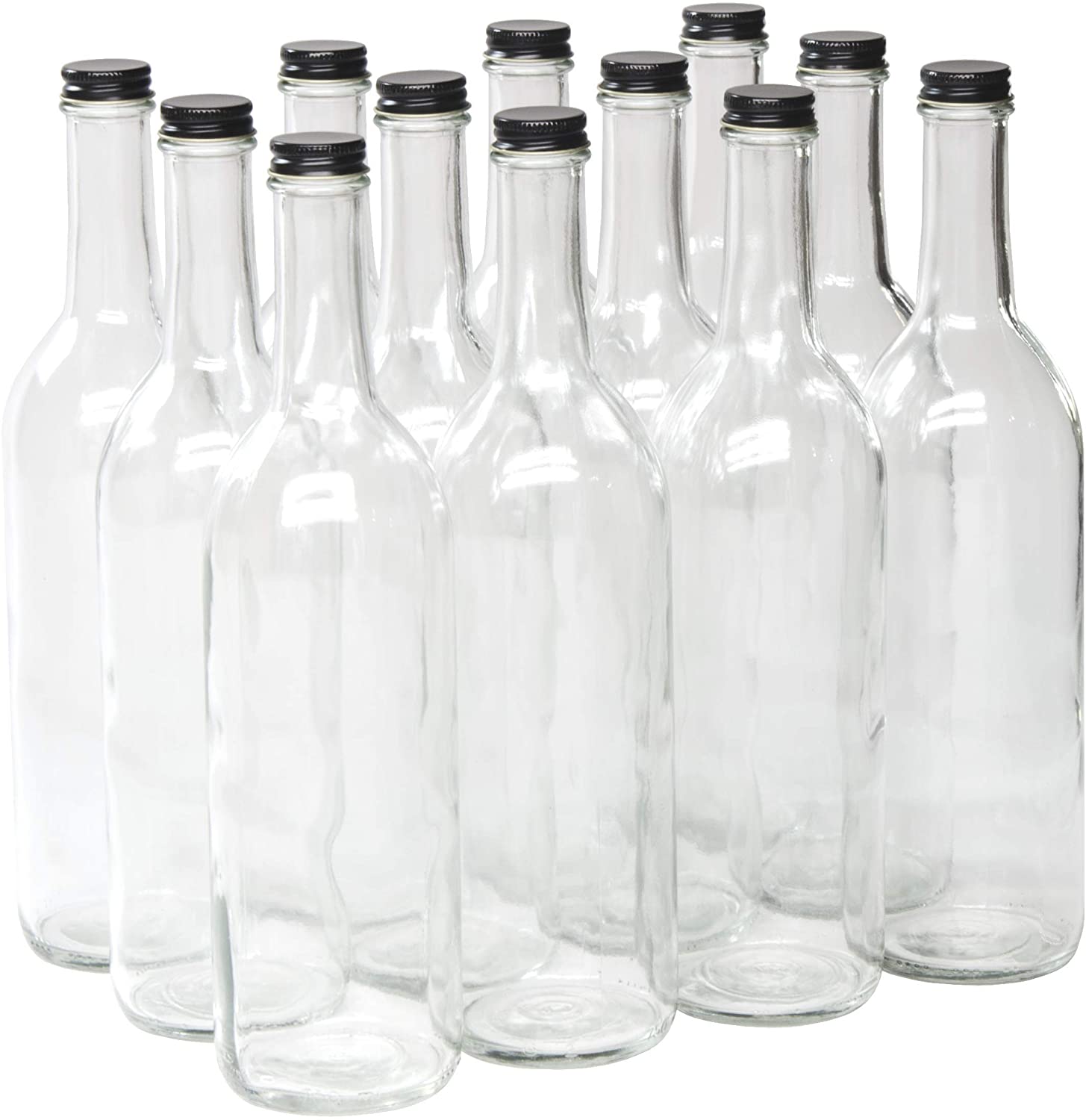 Case of 12 – Glass Bordeaux Shaped Rounded Top Wine Bottles with Screw-tops & Lids- 750 ml