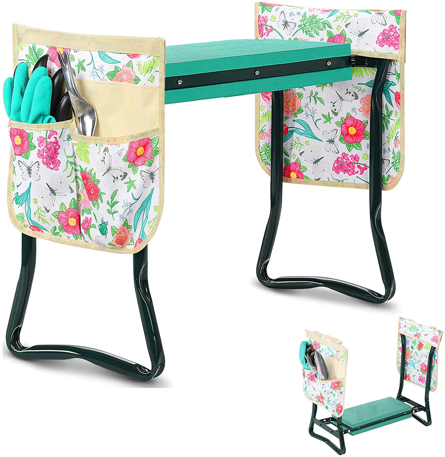 Garden Kneeler Seat with 2 Tool Pouches Garden Bench with Widen EVA Foam Pad Garden Stools Outdoor Tools Kit Sturdy Foldable Stools