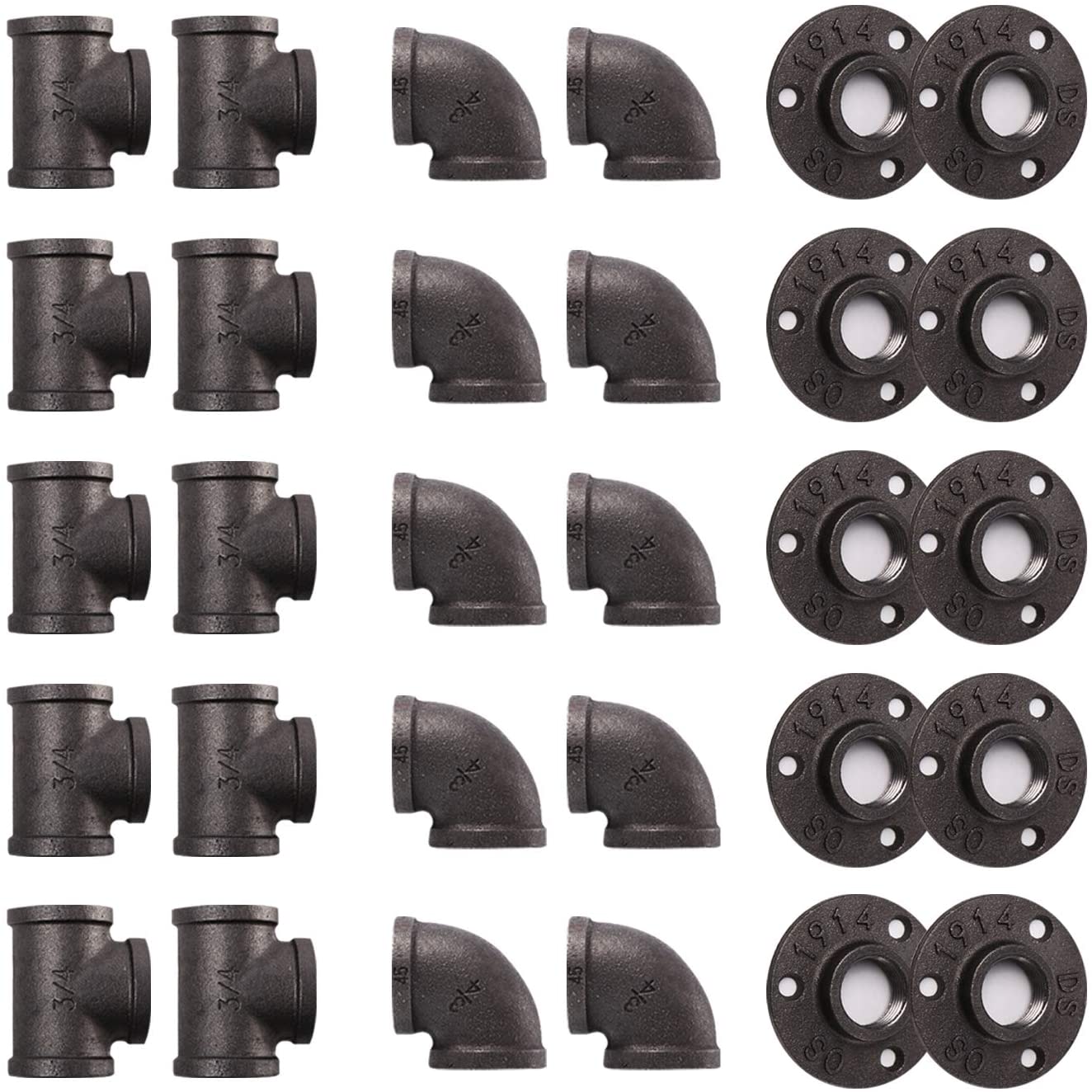 home-tzh-1-2-pipe-fitting-30-pack-1-2-gray-floor-flange-elbow-tee-combo-for-industrial-vintage-style-flanges-elbow-tee-with-threaded-hol