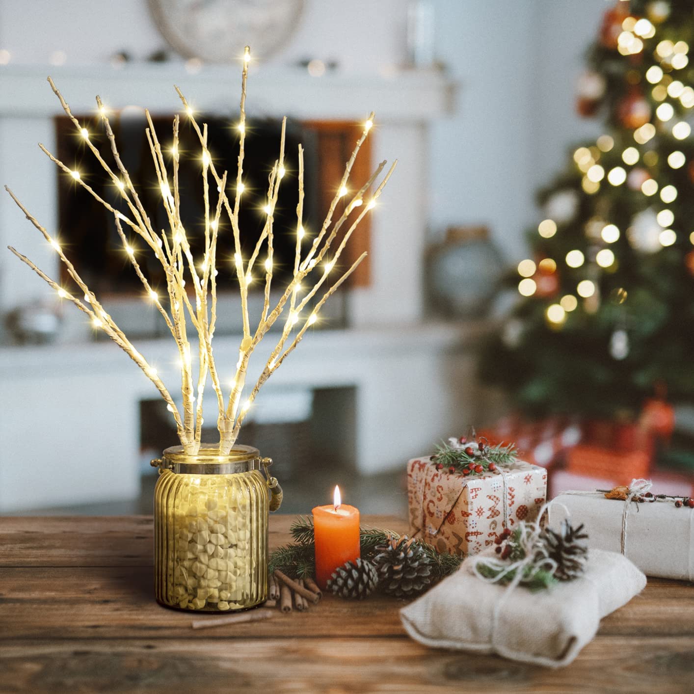 Hypestar 70LED Lighted Branches, Battery Operated Lighted Tree Branches with Timer Function, Decorative Twig Lights for Christmas, Holiday,