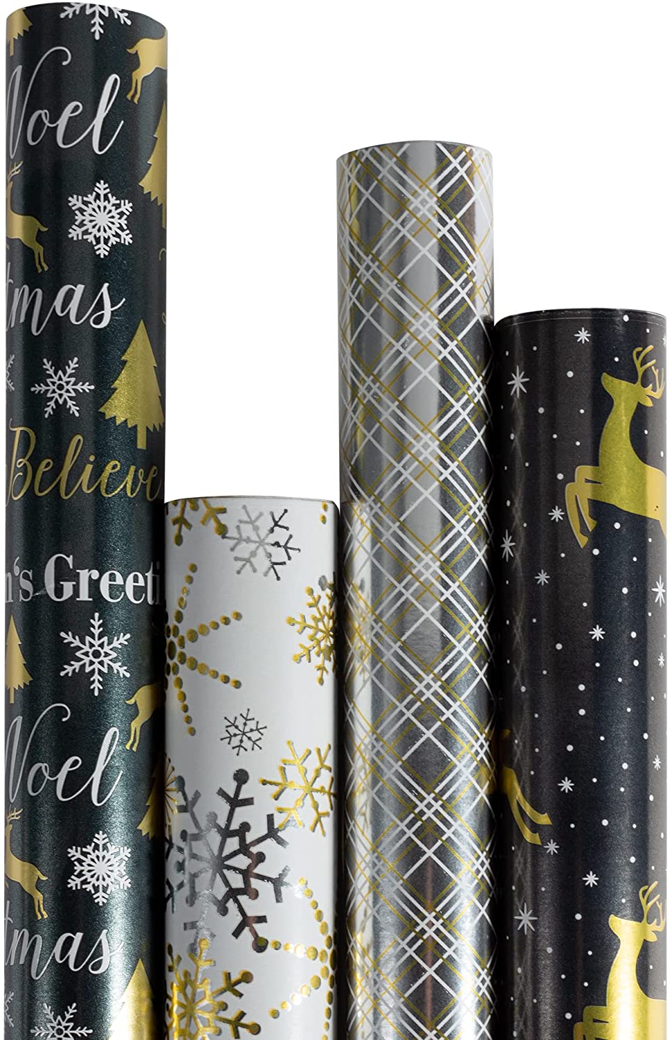 JAM PAPER Assorted Gift Wrap – Christmas Kraft Wrapping Paper – 125 Sq Ft Total – Kraft Christmas Set – 5 Rolls/Pack