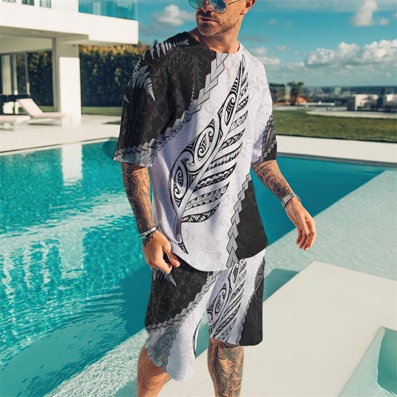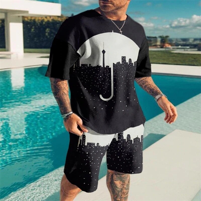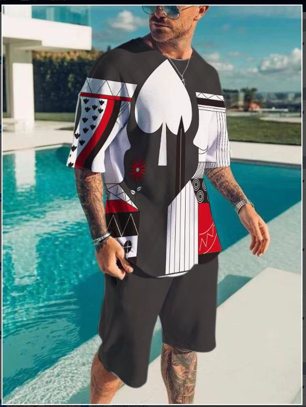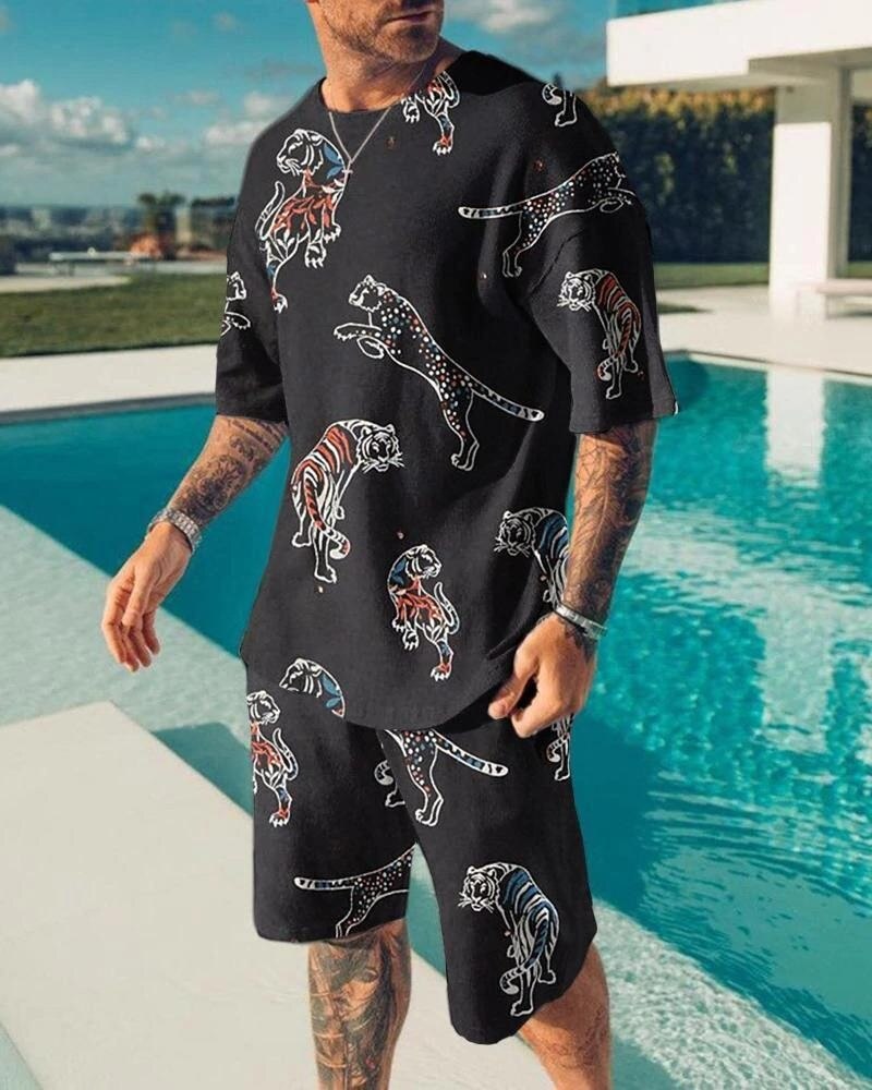 - men’s round neck suit: beach short sleeve suit
