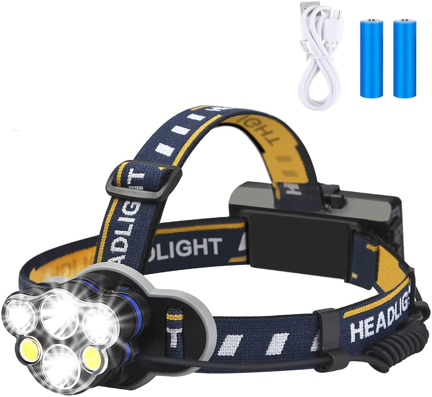 Rechargeable headlamp,Elmchee 6 LED 8 Modes 18650 USB Rechargeable Waterproof Flashlight Head Lights for Camping, Hiking, Outdoors