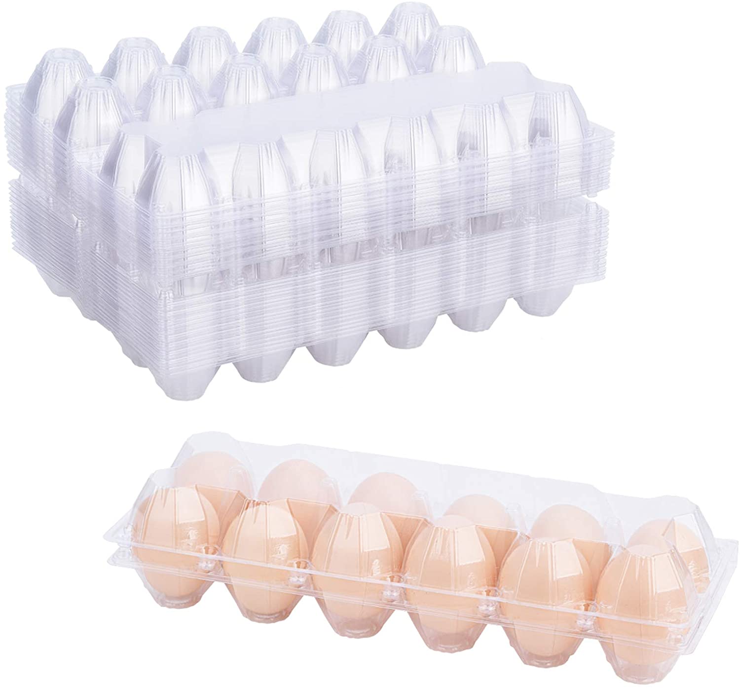 Toplife 20 Pack of Egg Cartons, Clear Plastic Eco-Friendly Egg Cartons Bulk with Sticky Labels, Each Holds 1 Dozen Eggs Securely, Set of 20