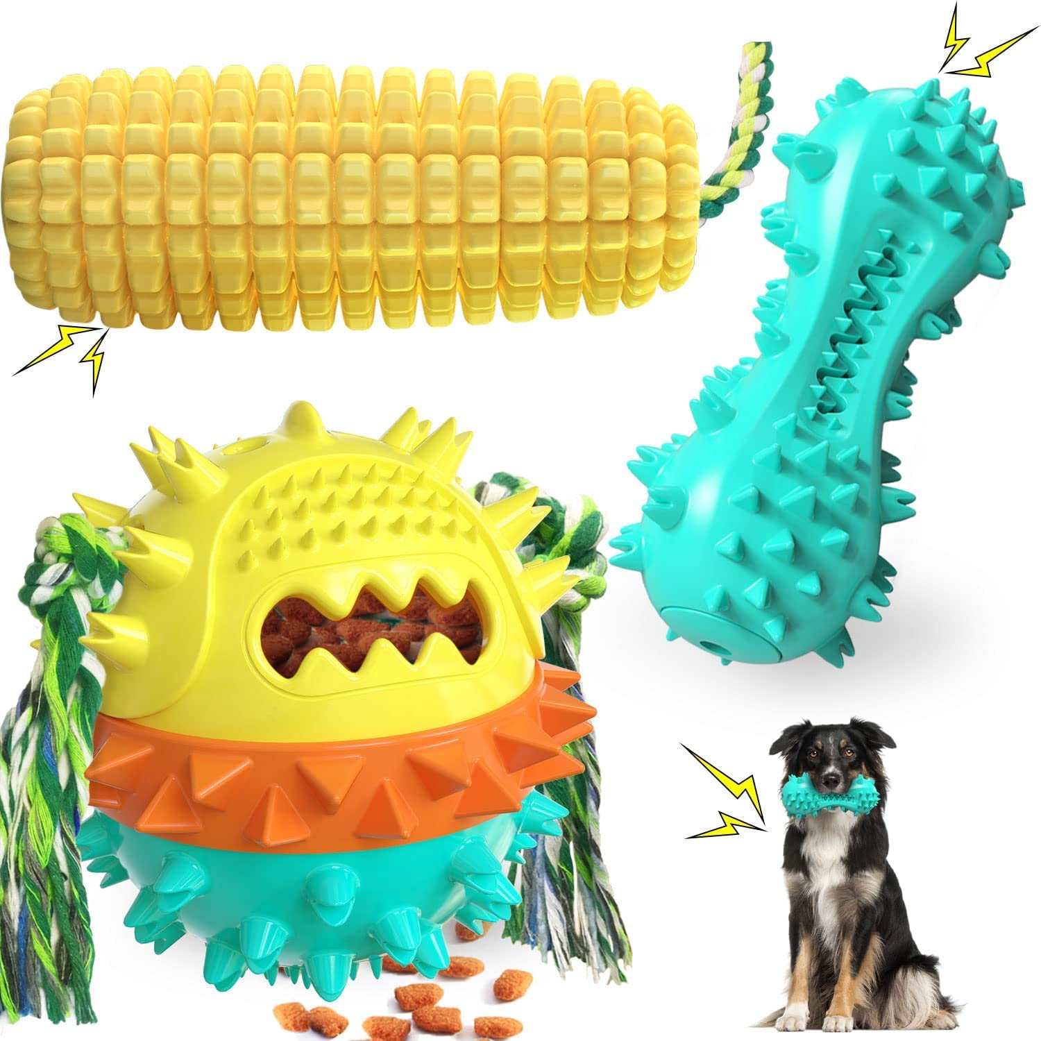 Watashee Dog Chew Toys for Aggressive Chewers, 3 Pack Squeaky Interactive Dog Toys for Small Medium Large Breed, Tough & Durable Rubber for