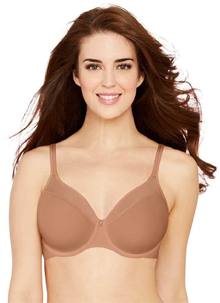 Full-coverage contour bra featuring two-part underwire cups with mesh insets and angled seams